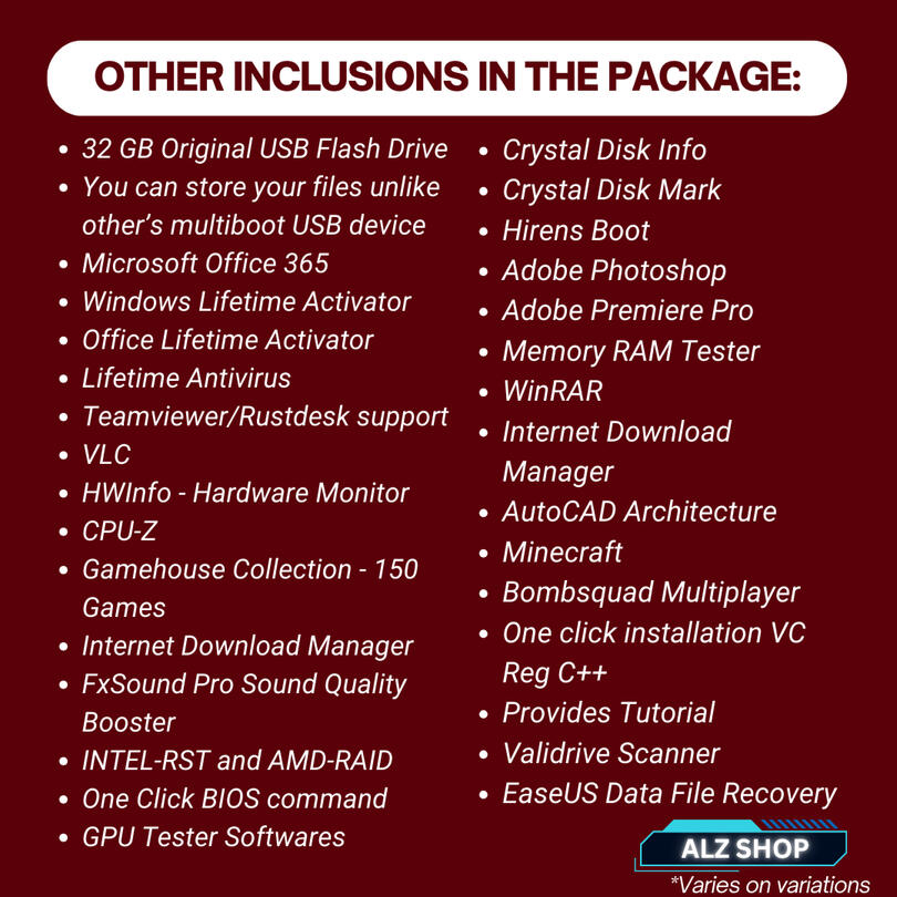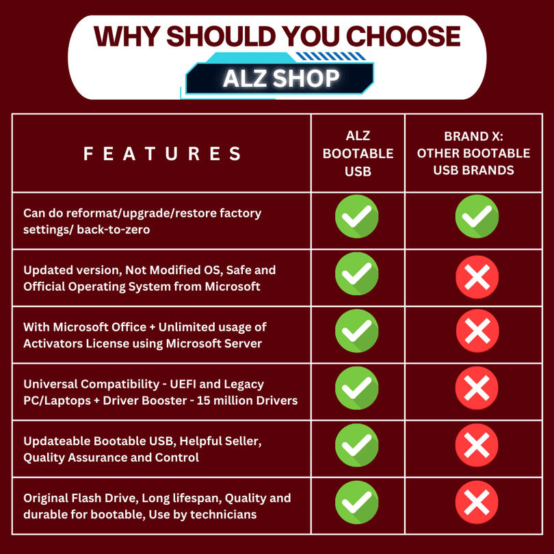 ✔️We offer a limited warranty that covers defects. If you experience any issues, feel free to contact our Store.8. How can I buy the ALZ Bootable USB?